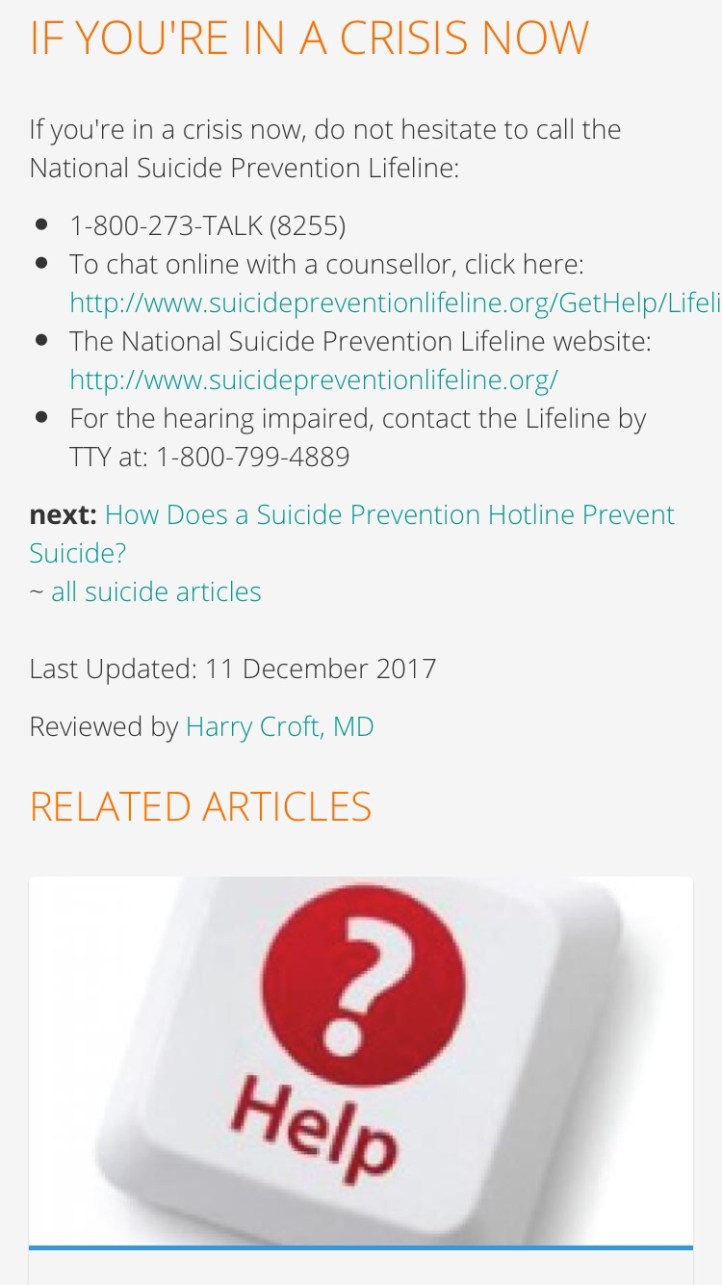 June 8, 2018 Jessie_Salsbury Reminder http://www.suicidepreventionlifeline.org/GetHelp/LifelineChat.aspx Share this: Share on X (Opens in new window) X Share on Facebook (Opens in new window) Facebook Like Loading...