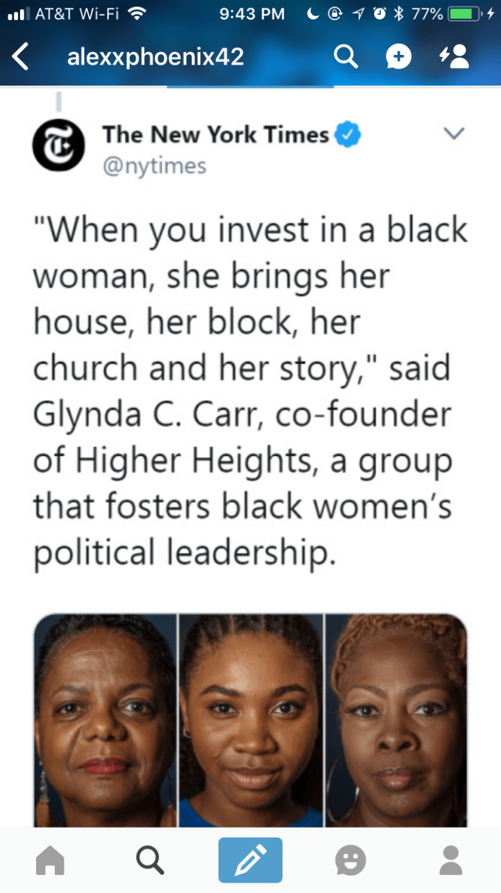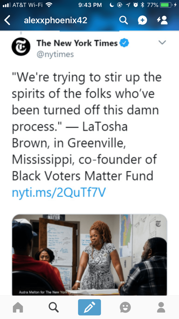 October 23, 2018 Jessie_Salsbury Black voters matter Ny times article here Share this: Click to share on X (Opens in new window) X Click to share on Facebook (Opens in new window) Facebook Like Loading...