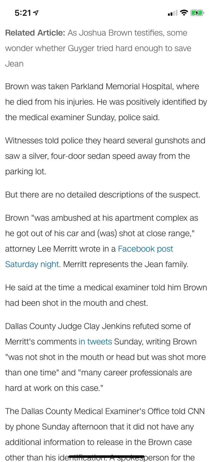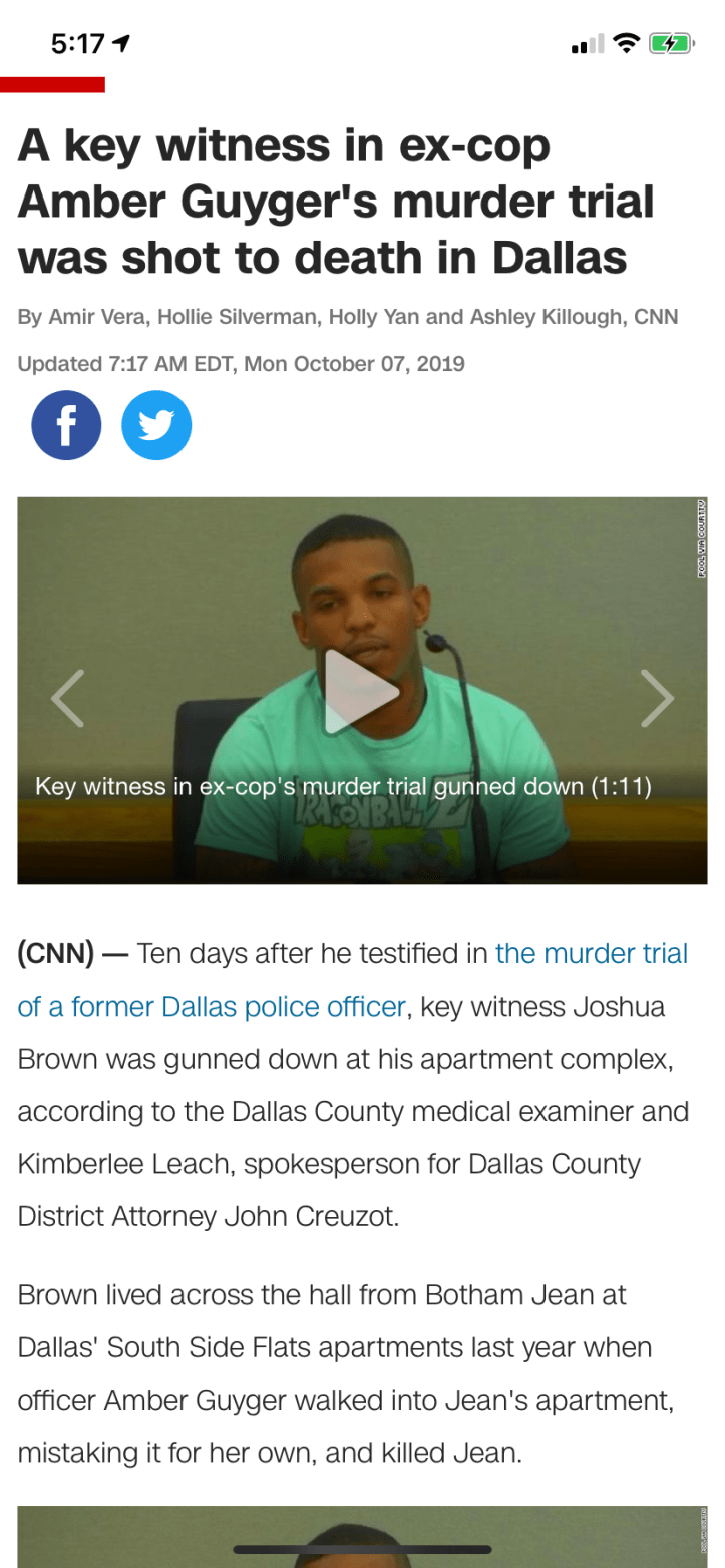 October 24, 2019 Jessie_Salsbury Joshua Brown https://amp.cnn.com/cnn/2019/10/05/us/botham-jean-neighbor-killed/index.html Share this: Click to share on X (Opens in new window) X Click to share on Facebook (Opens in new window) Facebook Like Loading...