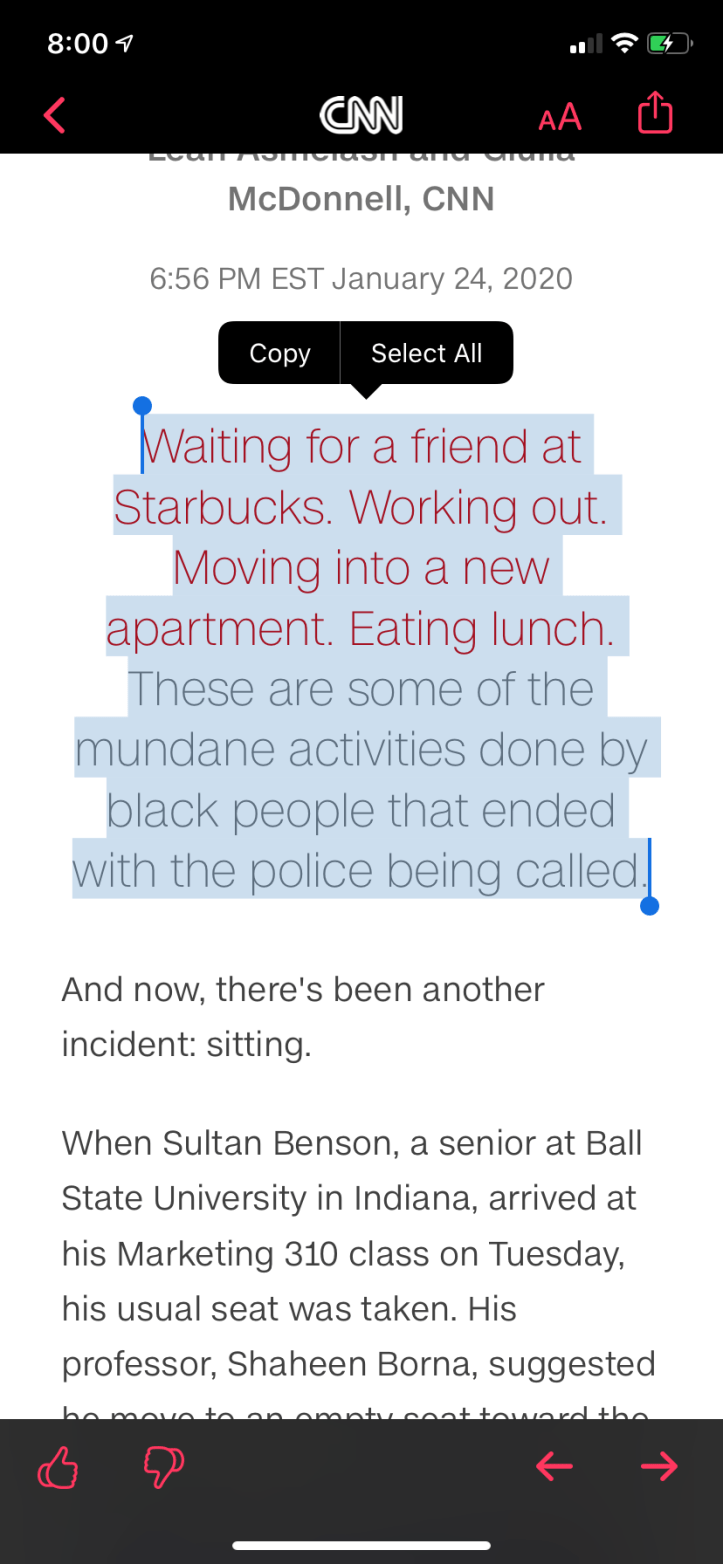January 25, 2020 Jessie_Salsbury Way to go ball state on a new dumb reason to call the cops on Blacks https://apple.news/AjwkwNhZOSNCq589pa3jk3w Share this: Share on X (Opens in new window) X Share on Facebook (Opens in new window) Facebook Like Loading...