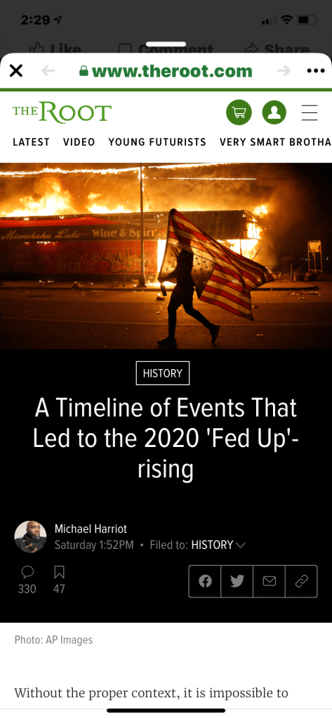 June 11, 2020 Jessie_Salsbury Fed up https://www.theroot.com/a-timeline-of-events-that-led-to-the-2020-fed-up-rising-1843780800 Share this: Share on X (Opens in new window) X Share on Facebook (Opens in new window) Facebook Like Loading...