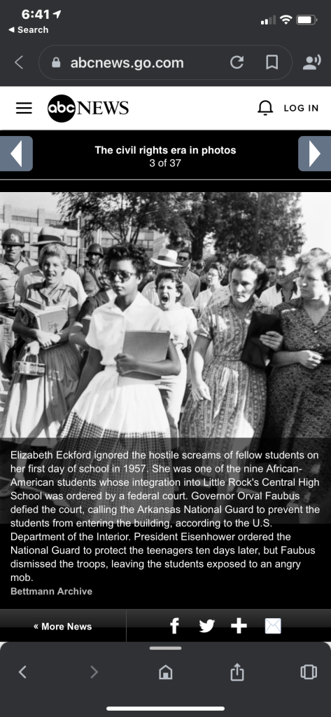 The white women and girls who yelled at Elizabeth Eckford may now be demanding equal pay at work, realizing their retirement funds are 30-40% less than their white male counterparts. They may have spent the last years in marriages they hated due to financial inequity or abuse. They may have been forced to watch while their children dated and married people of other races.